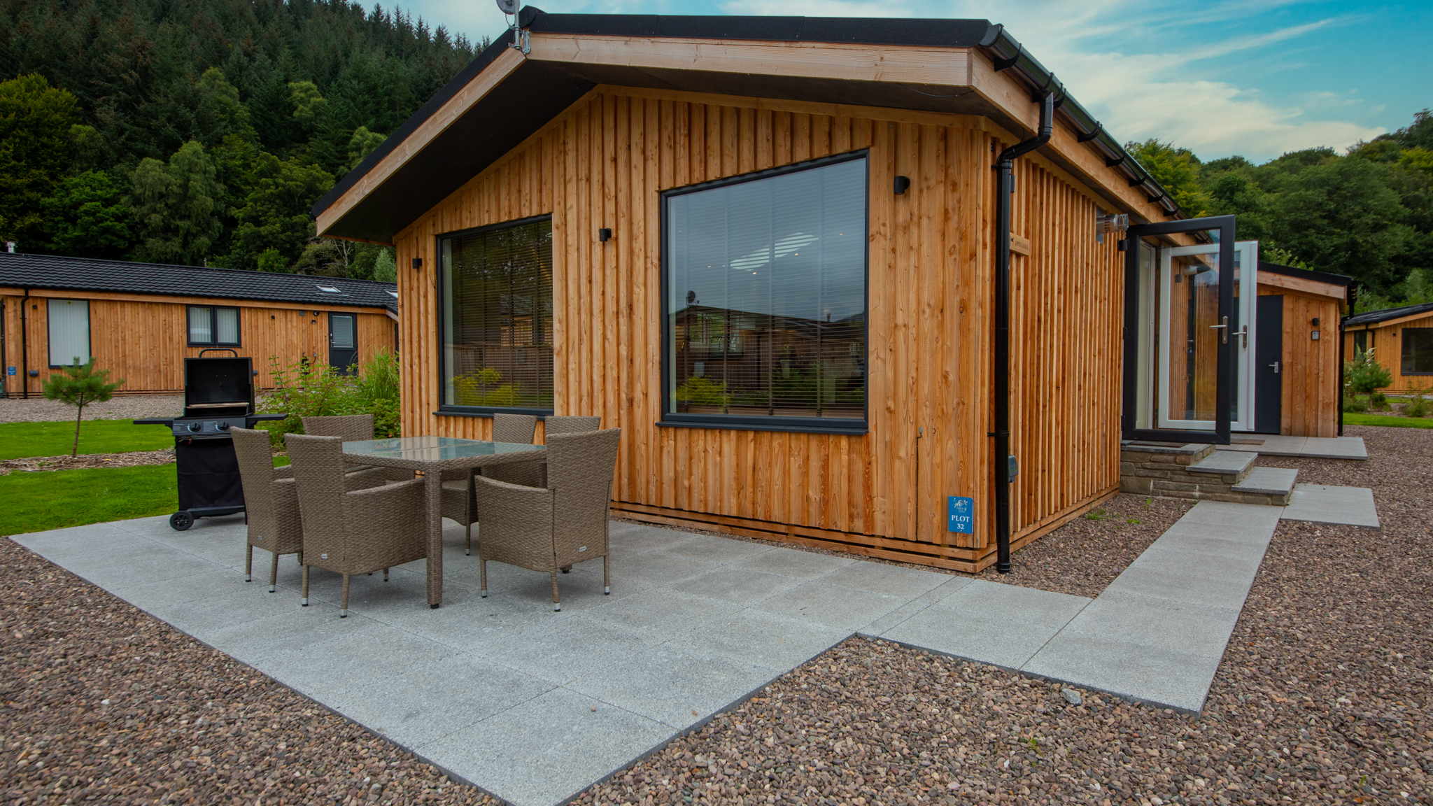 3 bedroom lodge with open plan living area with log effect fire, dining & fully equipped kitchen. Master bedroom with en-suite & 2 further bedrooms with family bathroom. Utility room with washer/drier. Parking close by lodge, patio area with furniture, gas bbq & hot tub. 6 person Sauna