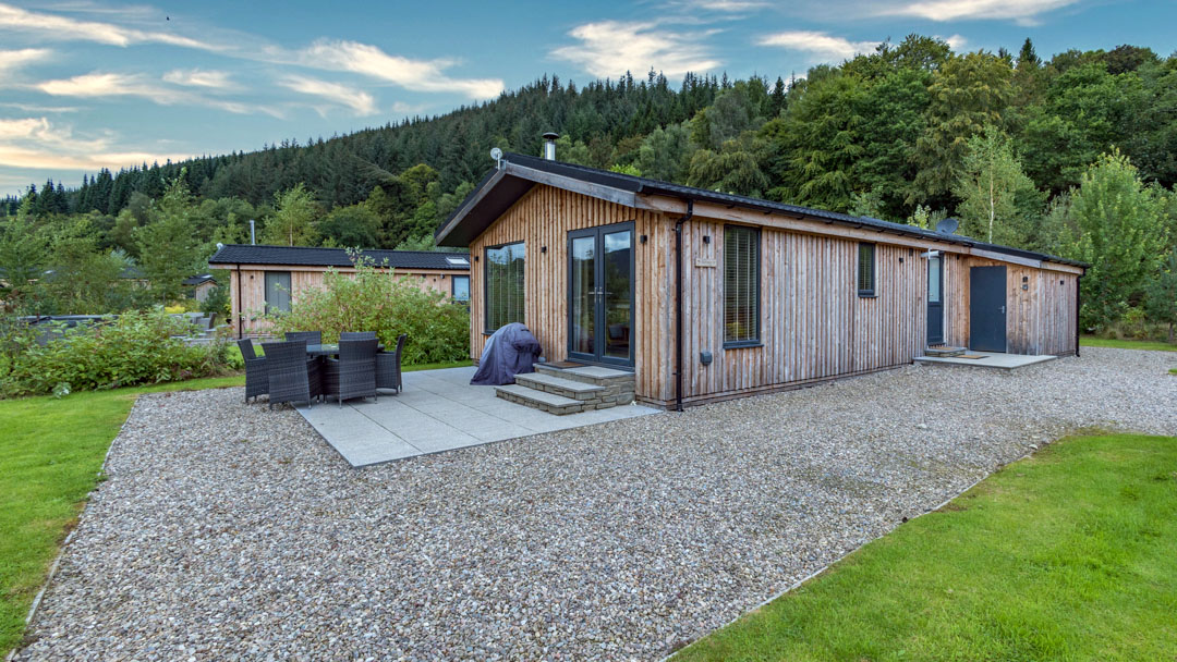 3 bedroom lodge with open plan living area with log effect fire, dining & fully equipped kitchen. Master bedroom with en-suite & 2 further bedrooms with family bathroom. Utility room with washer/drier. Parking close by lodge, patio area with furniture, gas bbq & stunning views.