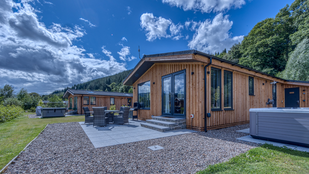 3 bedroom lodge with open plan living area with log effect fire, dining & fully equipped kitchen. Master bedroom with en-suite & 2 further bedrooms with family bathroom. Utility room with washer/drier. Parking close by lodge, patio area with furniture, gas bbq & hot tub. 2 person Sauna.