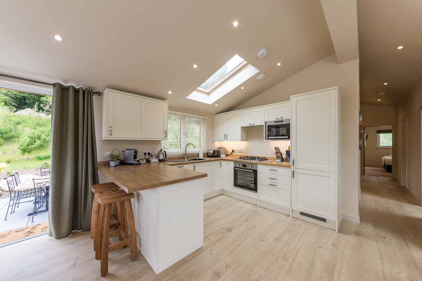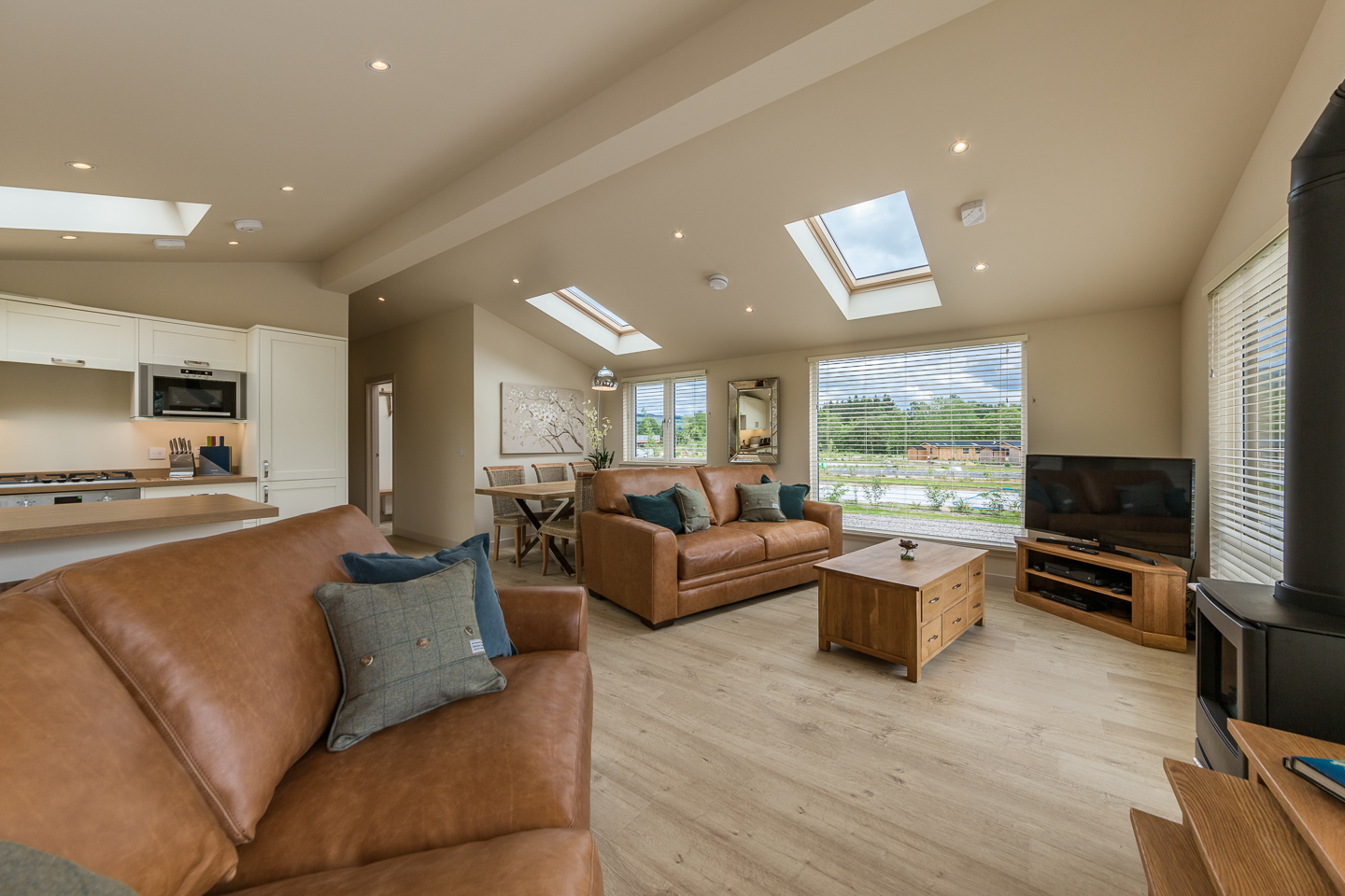 Beautifully furnished throughout Lyon Lodge comprises open plan lounge/kitchen/dining area and boasts gorgeous natural wood bespoke furniture.
