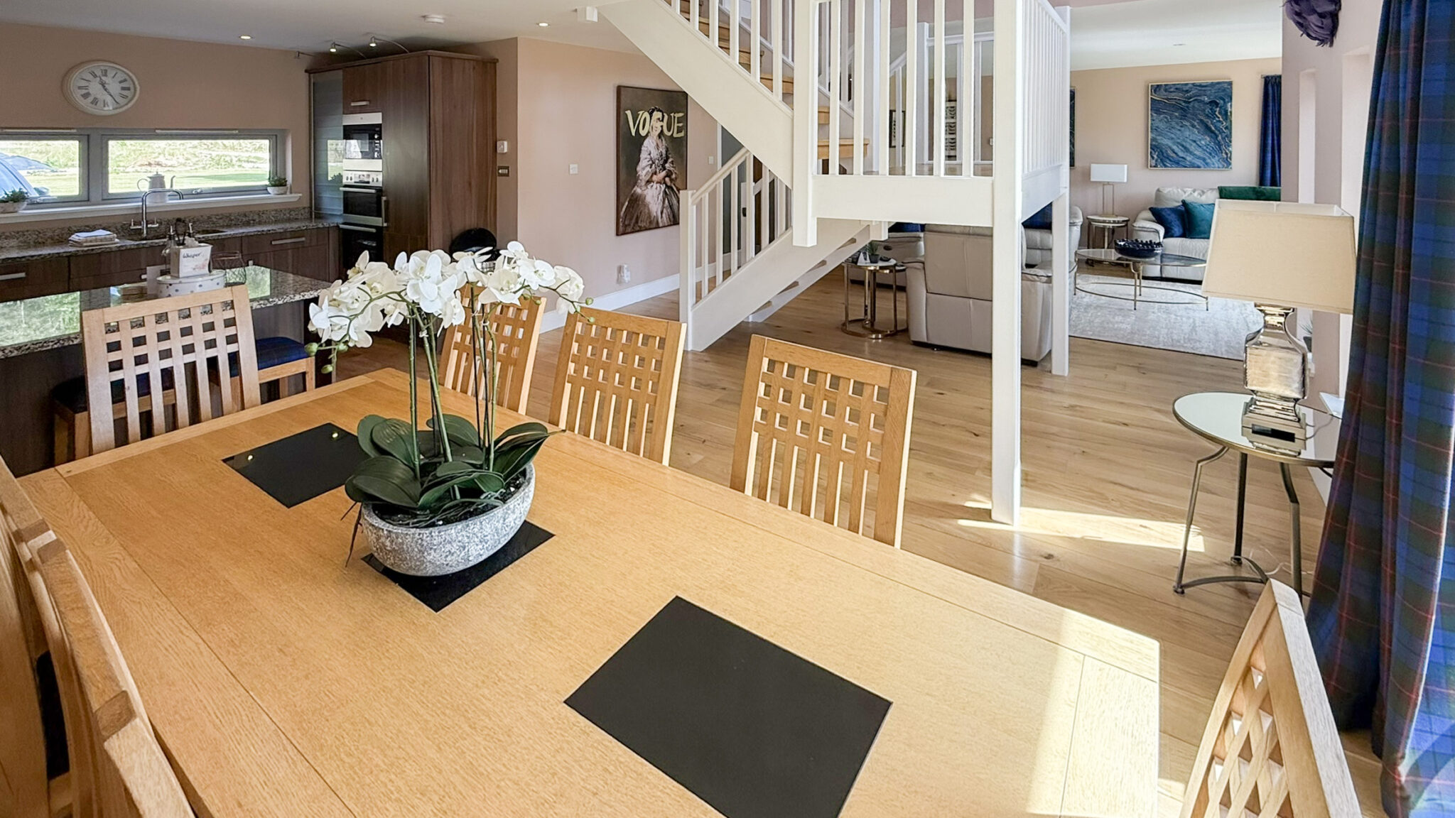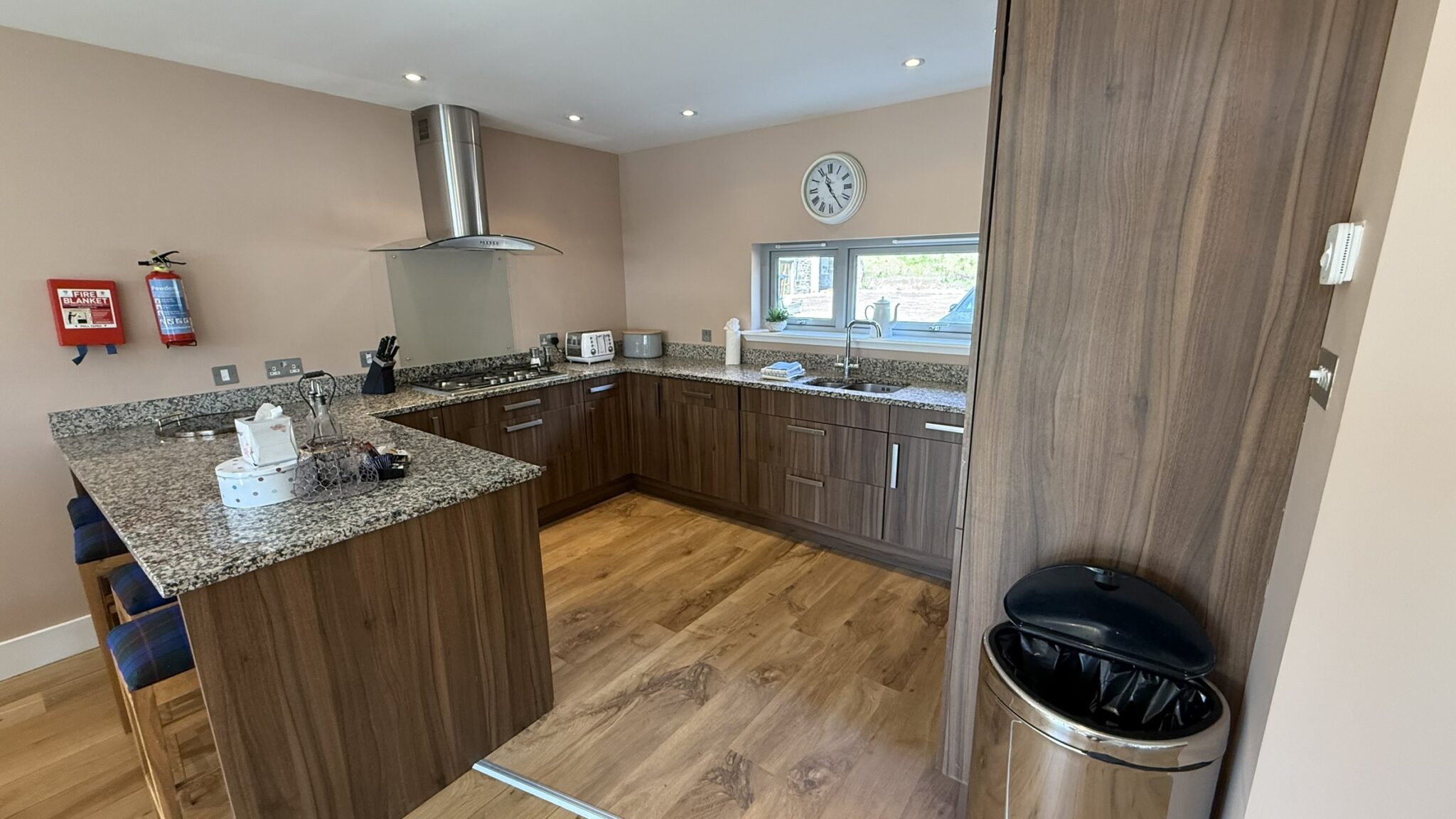 Large open plan living, fully equipped kitchen and dining area with 2 sets of patio doors leading to enclosed south facing garden with hot tub. There is a utility room with sink, washing machine/dryer as well as a cloakroom & WC.