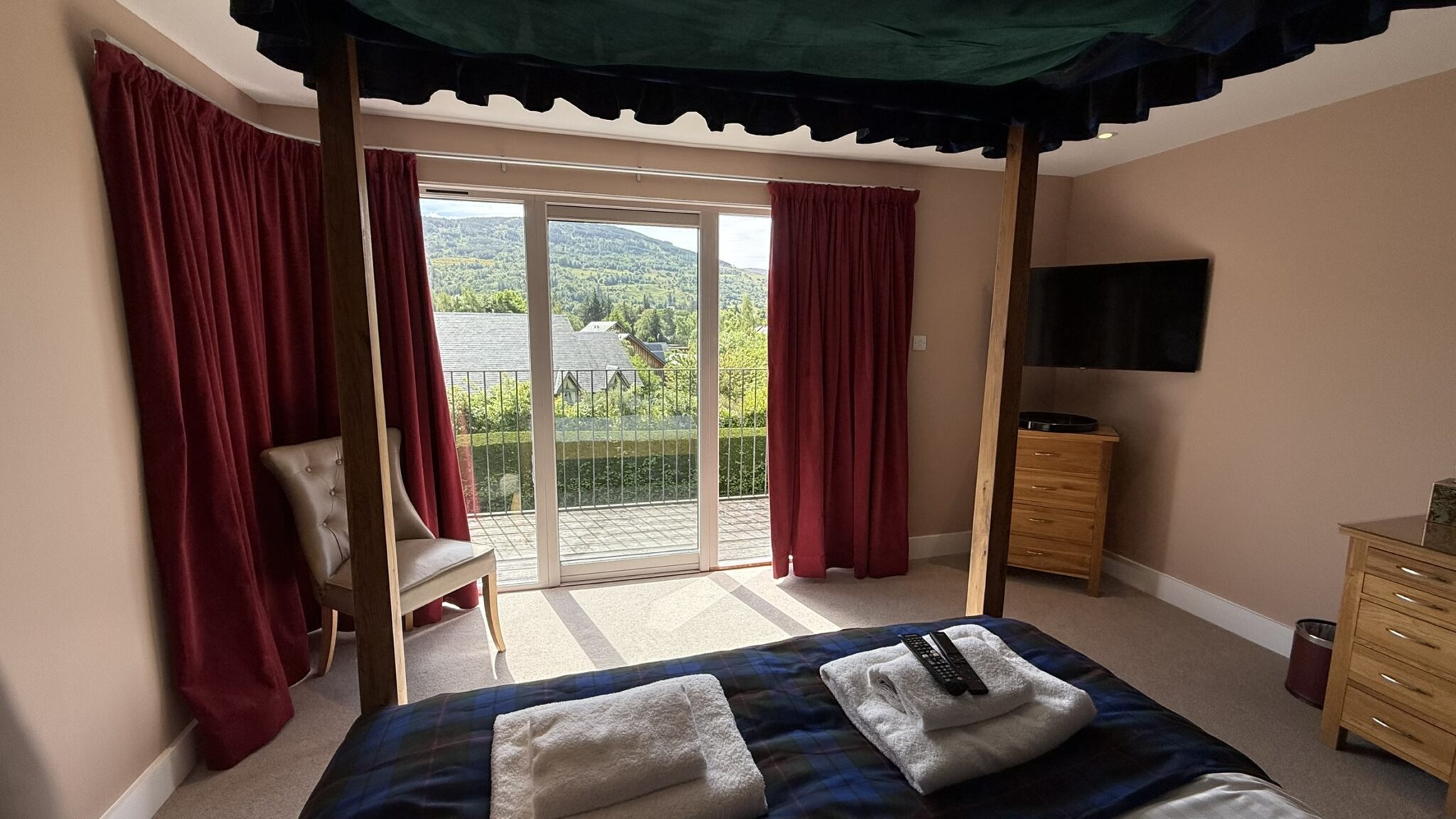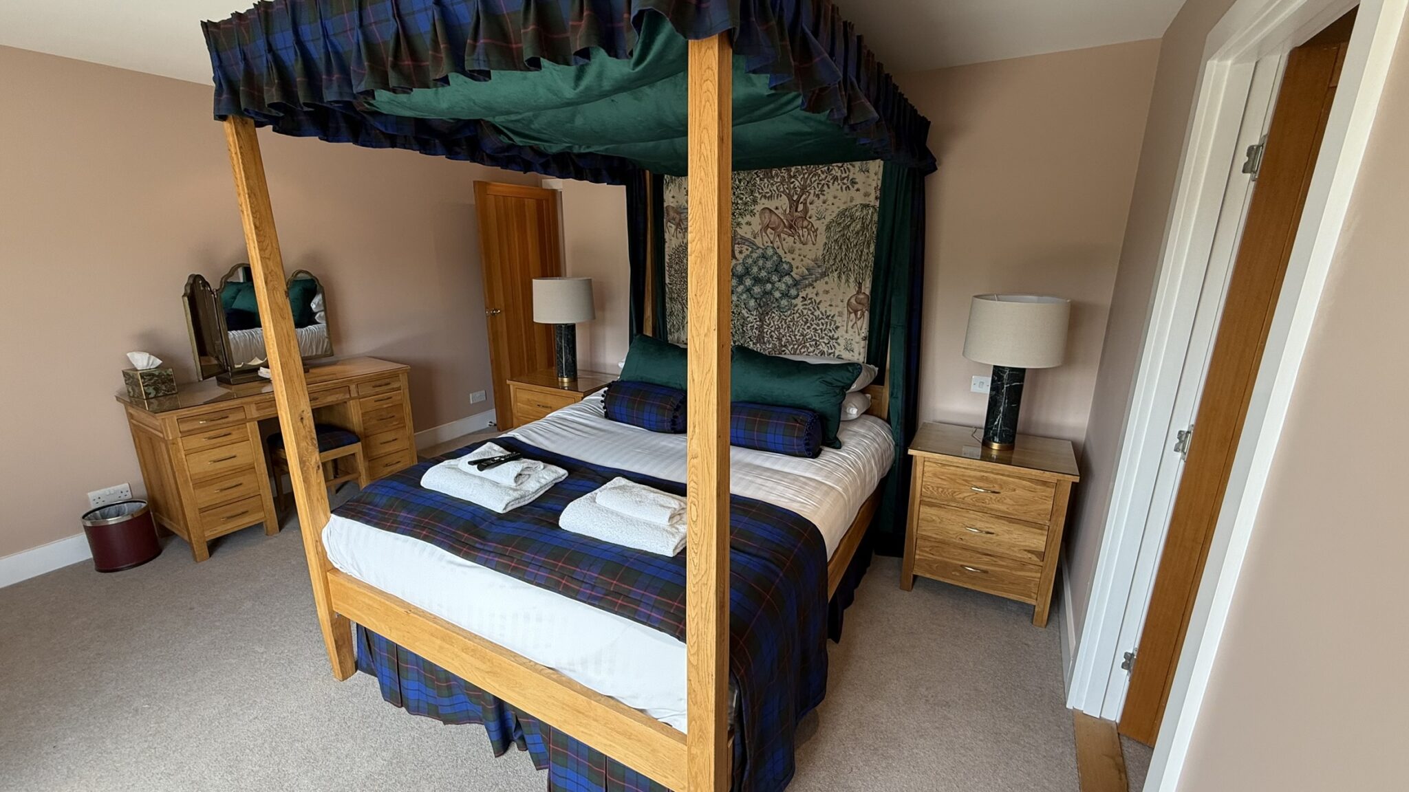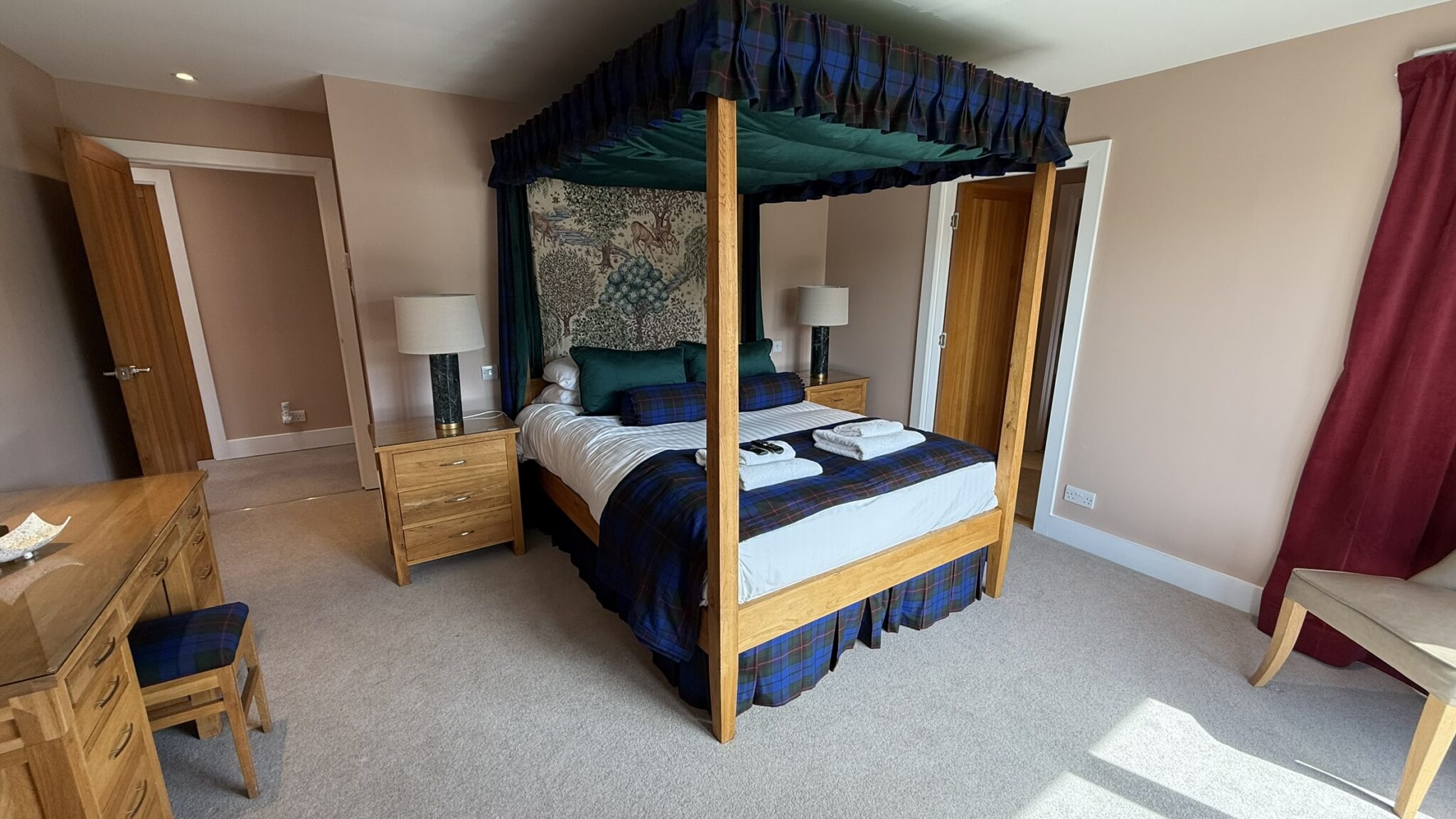1 x 4 poster en-suite bedroom, 3 x zip & link en-suite bedrooms. Bookings from any day arrival for a minimum 3 night stay.