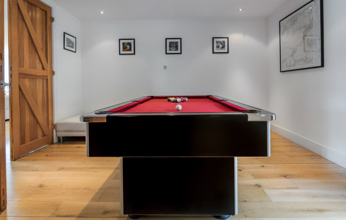Extensive open plan living with a log burning stove with well-equipped dining/kitchen/pantry. There is a separate games room with a pool table. Access to the garden is through patio doors to a south facing fully enclosed garden complete with hot tub and patio furniture.