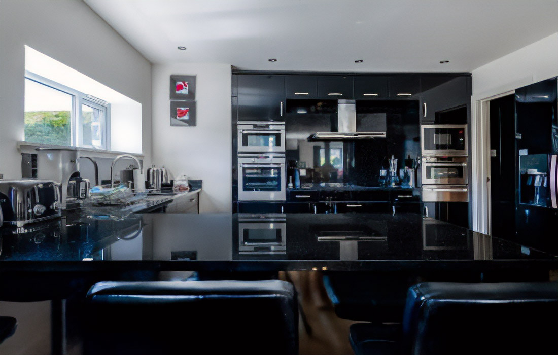 Large open plan living, fully equipped kitchen and dining area with 2 sets of patio doors leading to enclosed south facing garden with hot tub.