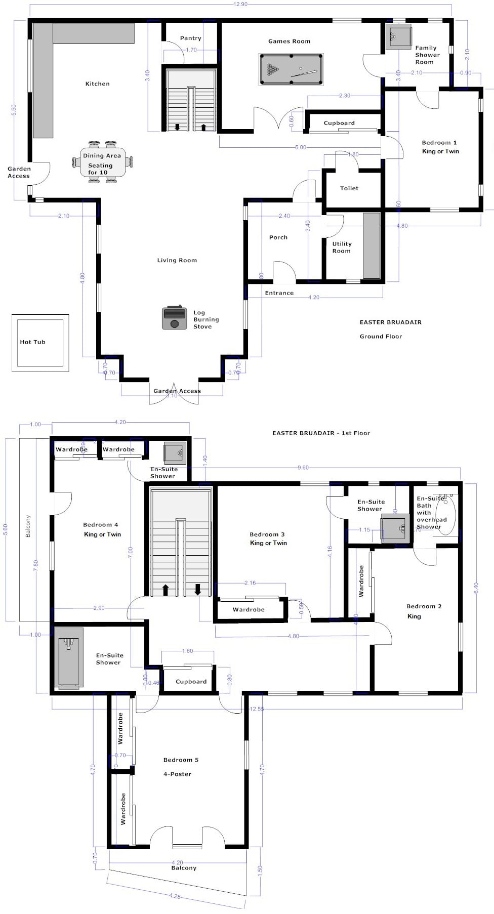 5 en-suite bedrooms, with games room. Accommodates 10 guests + cot. Built and furnished to the highest standard and designed for those accustomed to luxury living. Commanding views to our own Mains of Taymouth Golf Course with south facing garden.