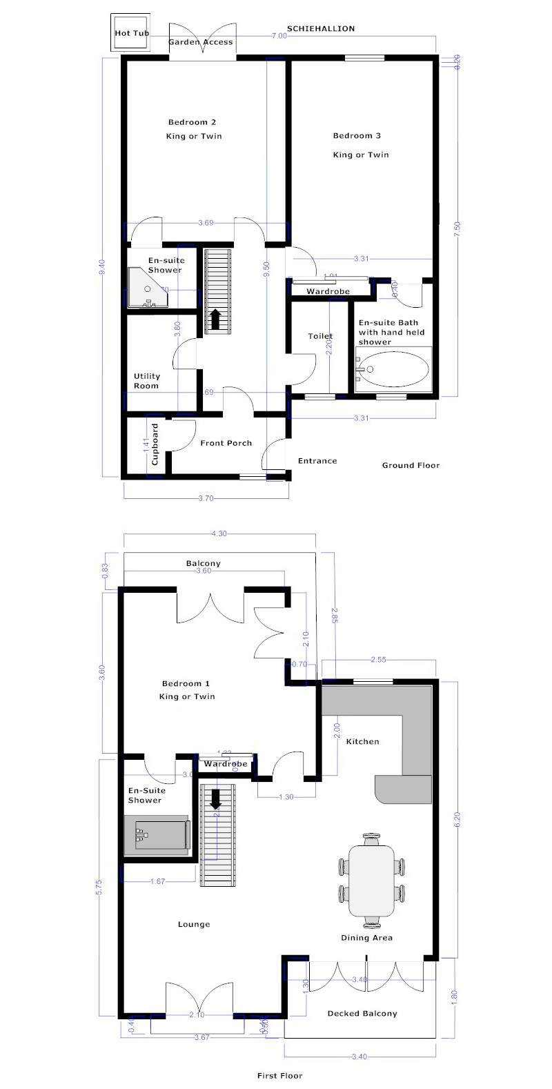 3 x en-suite bedrooms (superking or twin). Bookings from any day arrival for a minimum 3 night stay.