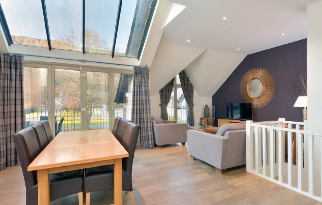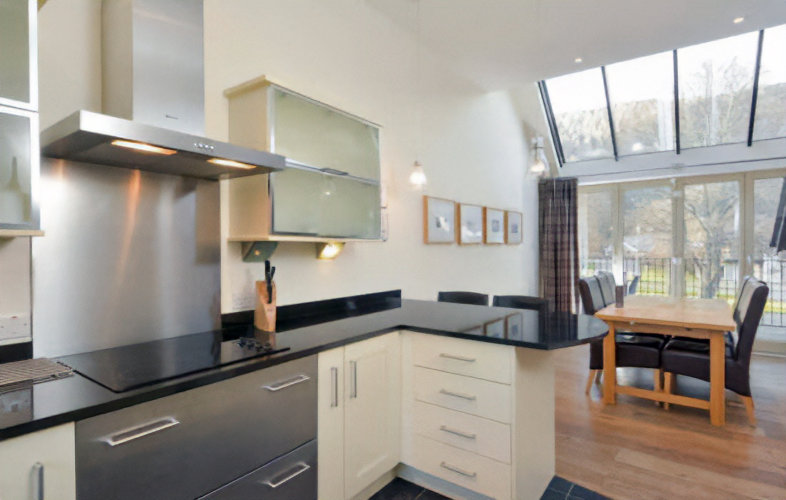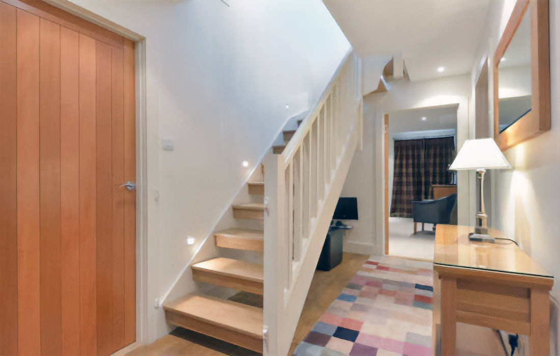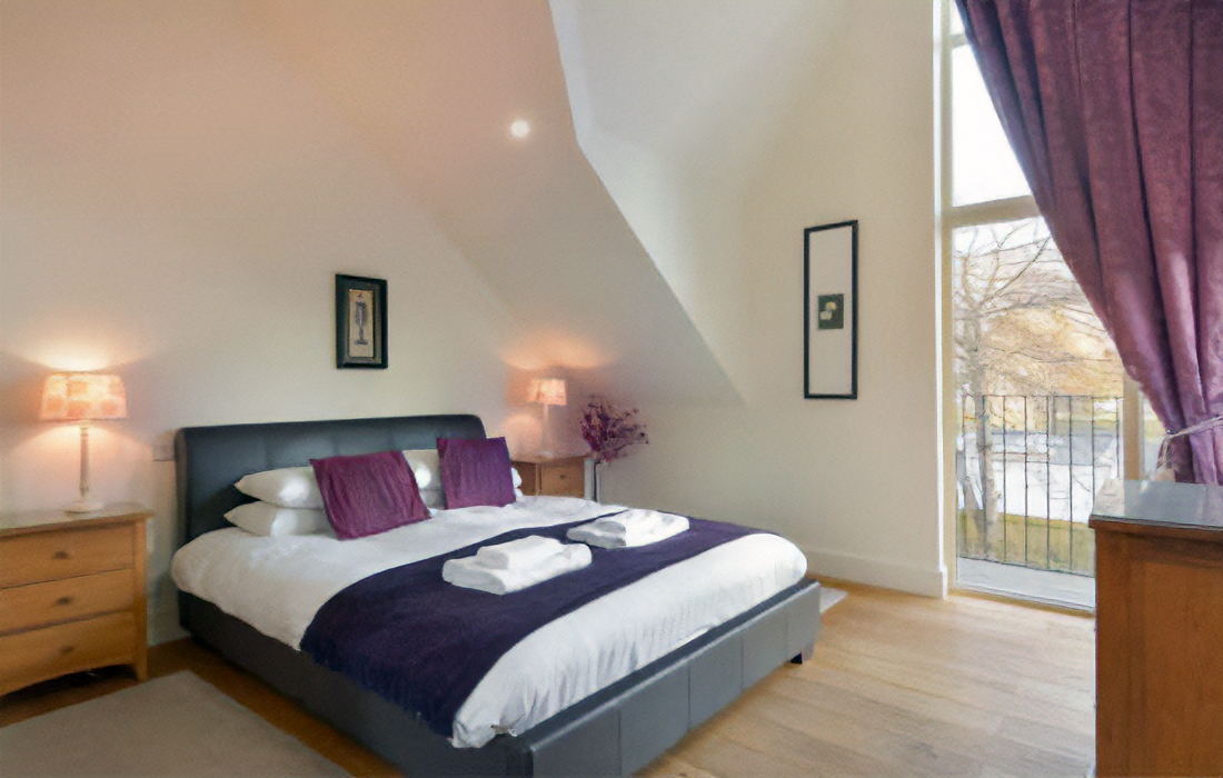 Schiehallion is a spacious mews house with floor to ceiling windows making the most of the stunning views of the Highlands which surround it. The accommodation is on two floors, and is accessed from the landscaped courtyard of Castle Gardens. An oak staircase with low level lighting leads to the first floor where a designer open plan lounge, kitchen & dining area has vaulted windows enabling the lounge to be extended onto a balcony for al fresco dining.