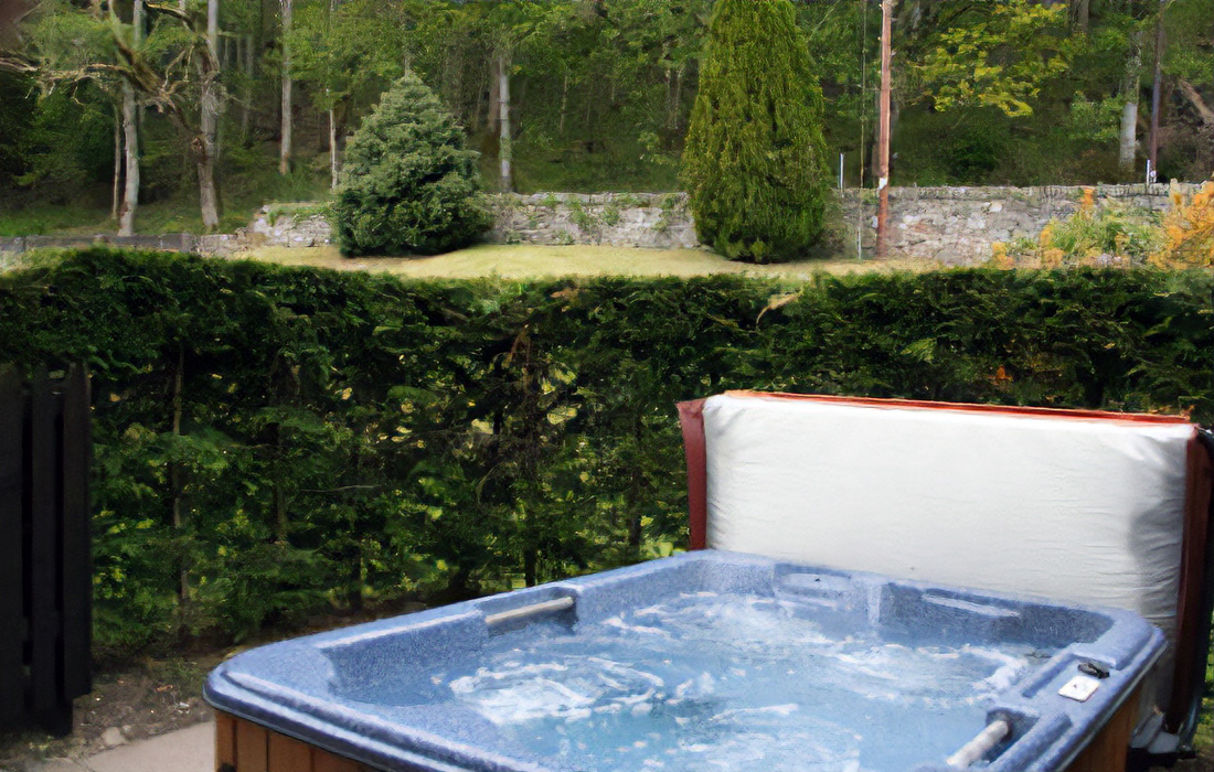 Quaint corner position offering two private garden areas with hot tub and seating area.