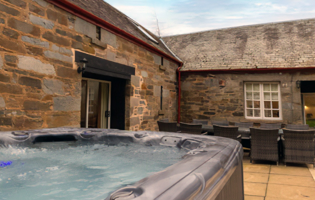 Private garden with hot tub, gas barbeque (seasonally) and garden furniture. The patio is accessed from the lounge, kitchen and ground level bedroom.