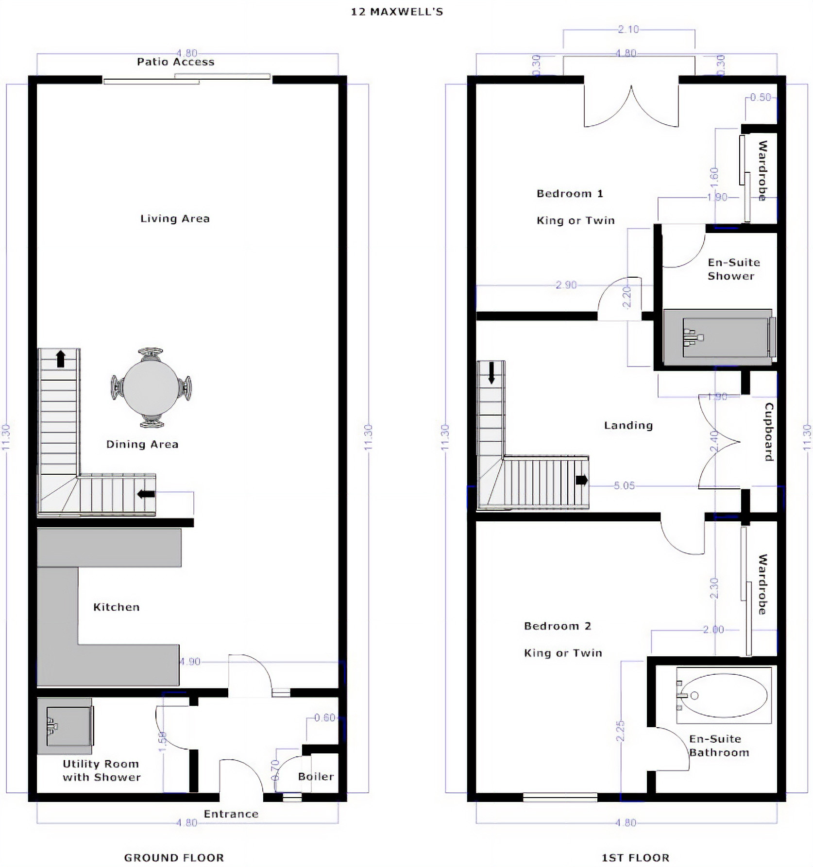 2 x en-suite bedrooms (super king or twin). Bookings from any day arrival for a minimum 1 night stay.