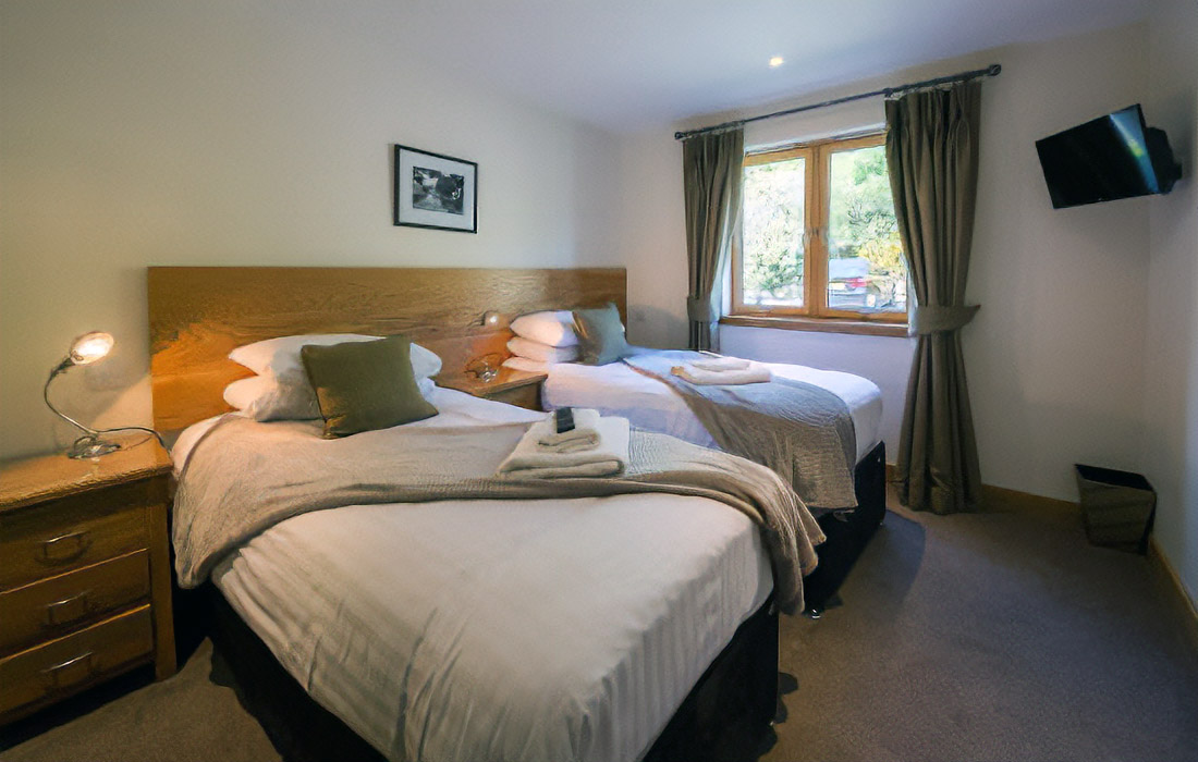 1 x en-suite bedroom (super king or twin) and 1 x bedroom (super king or twin) with adjacent bathroom. Bookings from any day arrival for a minimum 1 night stay.