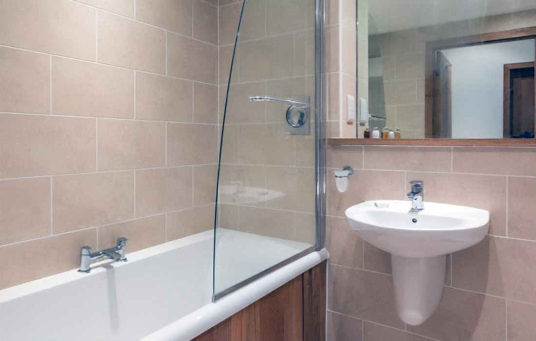 Another bedroom that is zip & link. There is a family bathroom opposite with a bath and overhead shower.